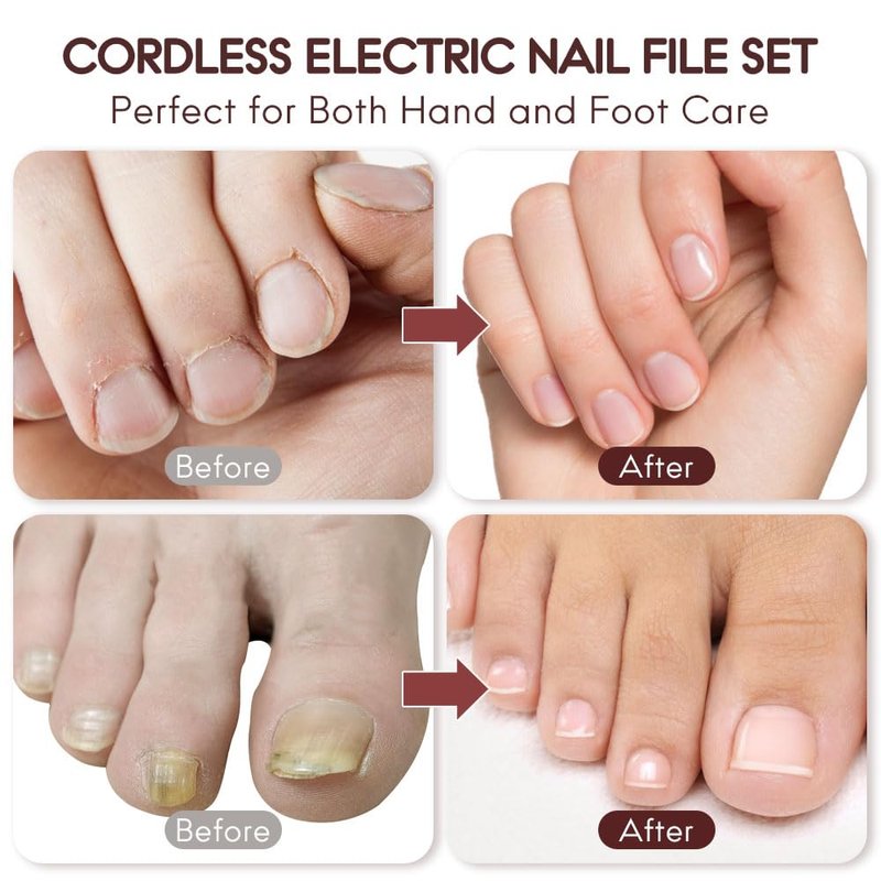 - 【Portable Nail File Machine】The ergonomic and non-slip design ensures a comfortable grip for acrylic nails is perfect for both hand and foot care, and its small size and lightweight design make it easy to carry in your purse or travel bag. Let you enjoy hand and foot care wherever you want without the hassle of cables.