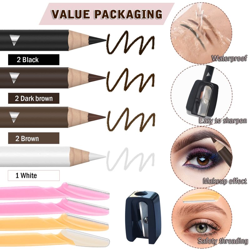 - 1.【7High quality eyebrow pencil】2Dark Brown 2 Dark Curry 2 Black +1 White eyebrow pencil,4 eyebrow trimmers。