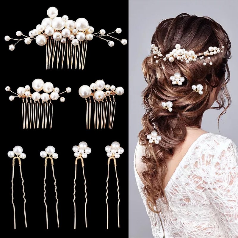 7PCS Pearl Wedding Hair Combs Bridal Headpiece Pearl Hair Pins Hair Clips Elegant Hair Accessories for Bridesmaids Brides Flower Girls