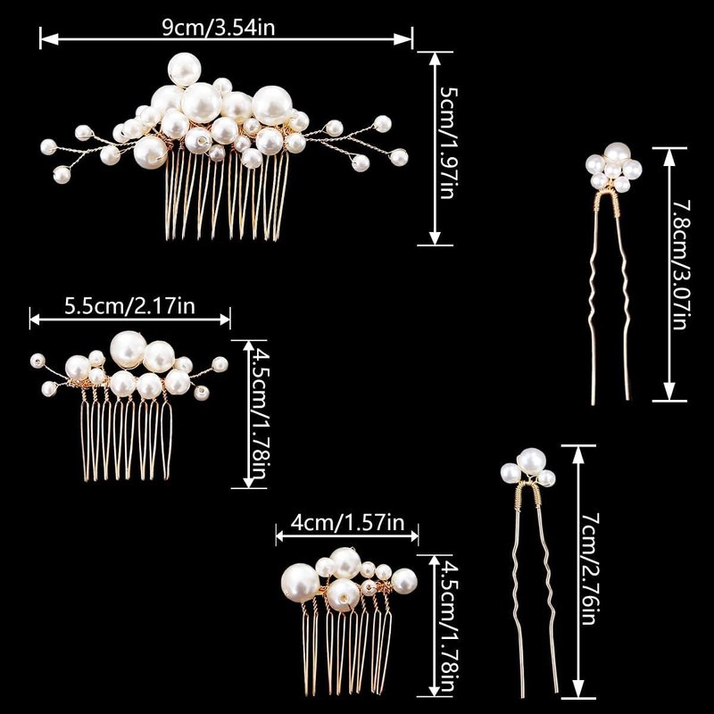 - Package Include: You will receive 7 pieces of bridal hair combs and pins in 5 different styles. The size of style 1 (large comb) is 3.54 x 1.97inches; the size of style 2 (middle comb) is 2.17 x 1.78inches; And the size of style 3 (small comb) is 1.78 x 1.57inches; the size of other hair pins about 3.07 x 0.4inches and 2.76 x 0.4inches.