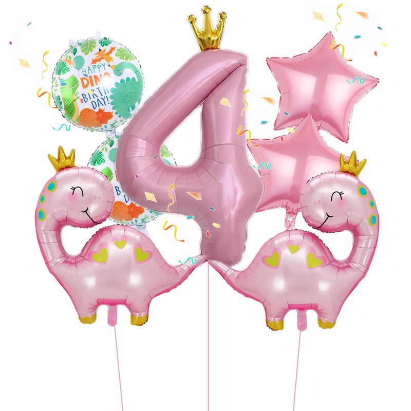 - Package:2pcs Pink Crown Dinosaur foil balloon, 1pcs Pink Crown number balloon, 2pcs 18'' pink star balloon,2pc 18 inch circular Dinosaur balloons.