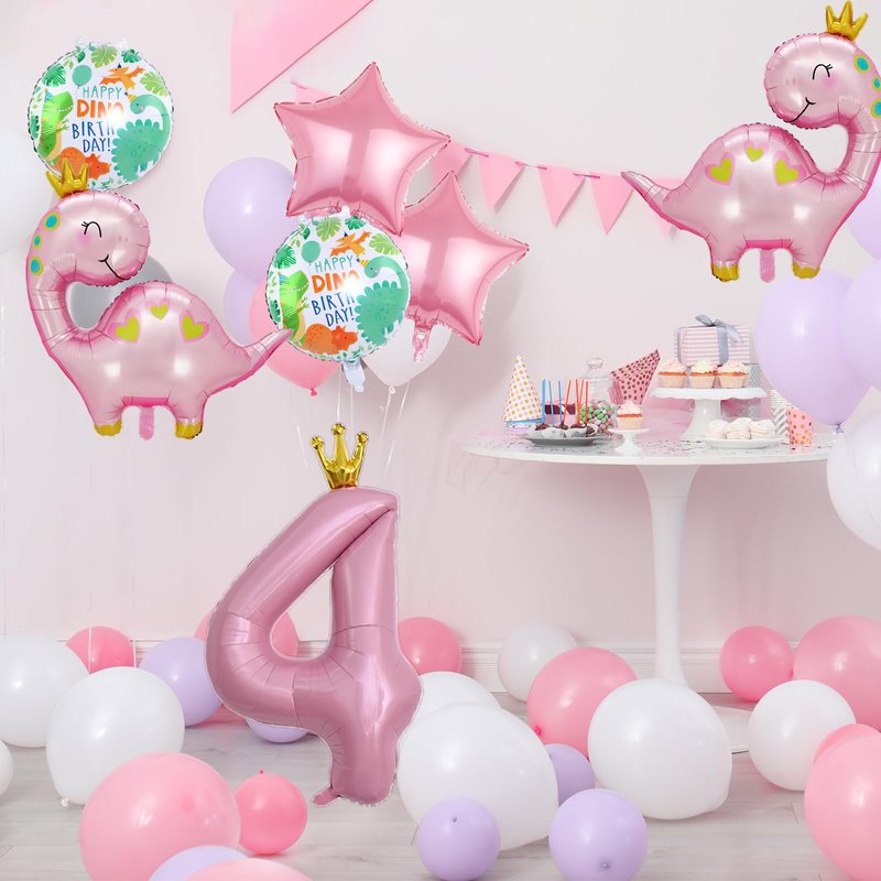 These Pink Crown Dinosaur theme number balloons balloons are so cute, you can make the most of them to decorate your birthday party.