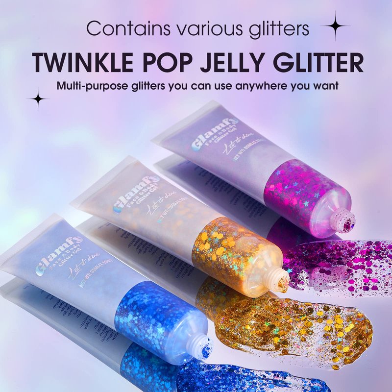 - 【Easy to Apply and Clean 】Fashion Body Glitter is a glitter body gel that is sticky, so you don't need to use glue when using it, save your makeup time. It has cosmetic-grade gloss and is safe for use on the face, skin or where you like. This Body Glitter Gel is easy to use, easy to clean, Long-lasting and highly shiny. Face jewels stick on glitter can be used directly in the body wherever you want to decorate, perfect for rave outfit accessories. Apply to hair and body with fingertips or brush.