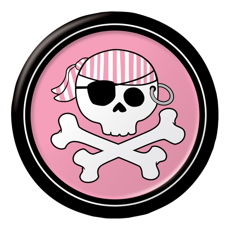 8-Count Round Paper Dessert Plates, Pirate Parrty Girl