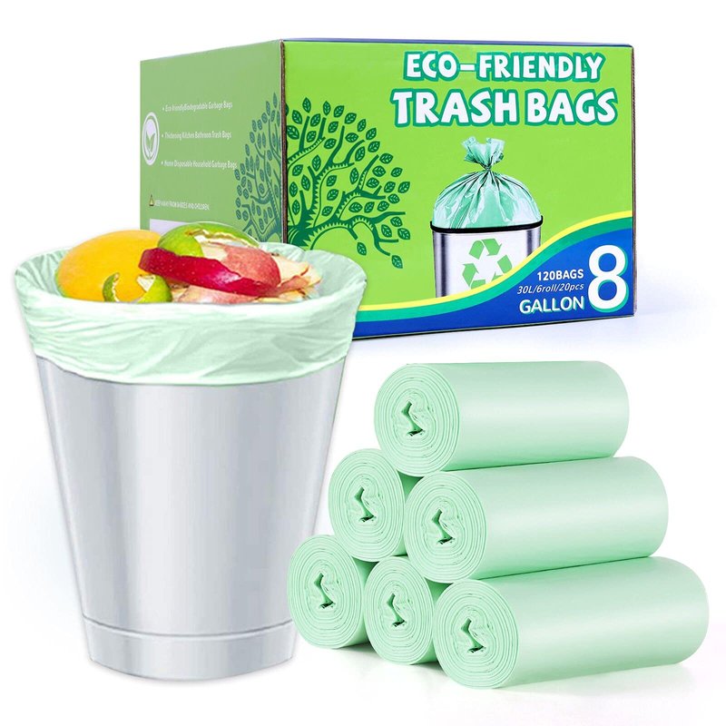 8 Gallon Trash Bags Biodegradeable Medium Garbage Bags, Extra Strong Trash-Can-Liner for Bathroom Kitchen Office (120 Counts, 30 Liter, Green)