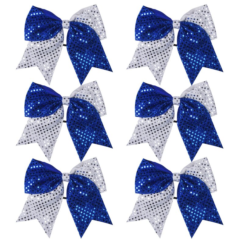 8 Inch 2 Color Cheer Bows Cheerleader Ponytail Holder with Bling Fling Sequin Hair Tie Cheerleading Bows 6 Pcs (Royal Blue/Silver)