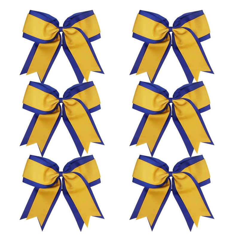 8 Inch 2 Colors 2 Layers 6 Pcs Jumbo Cheerleader Bows Ponytail Holder Cheerleading Bows Hair Elastic Hair Tie for High School College Cheerleading (Royal blue/Gold)