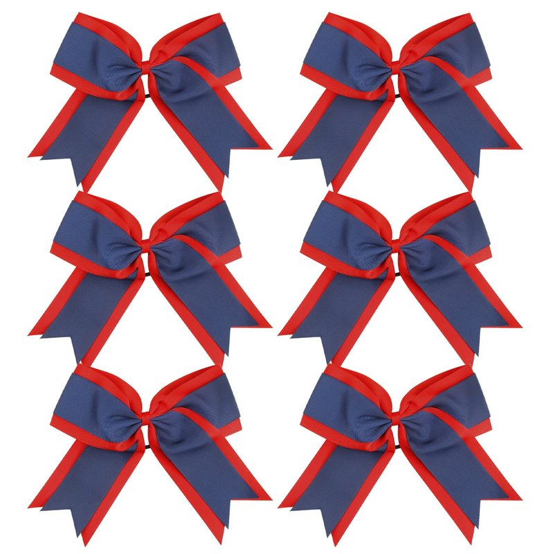 8 Inch 2 Colors Cheerleader Bows 2 Layers 6 Pcs Ponytail Holder Cheerleading Bows Hair Elastic Hair Tie (Red/Navy blue)