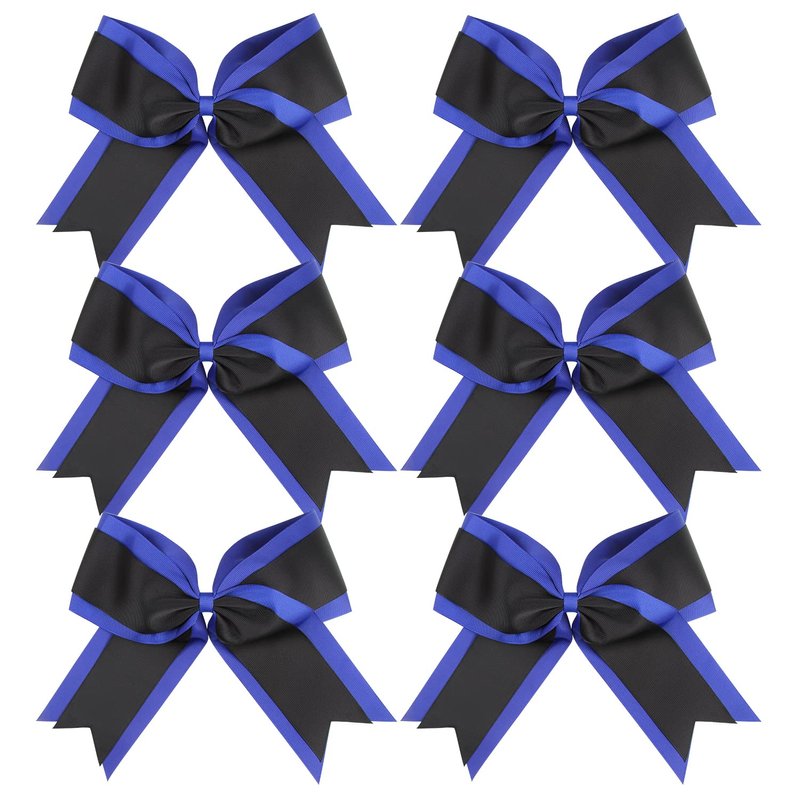 8 Inch 2 Colors Cheerleader Bows 2 Layers 6 Pcs Ponytail Holder Cheerleading Bows Hair Elastic Hair Tie (Royal blue/Black)