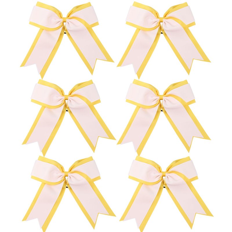 8 Inch 2 Colors Cheerleader Bows 2 Layers 6 Pcs Ponytail Holder Cheerleading Bows Hair Elastic Hair Tie (Yellow/White)