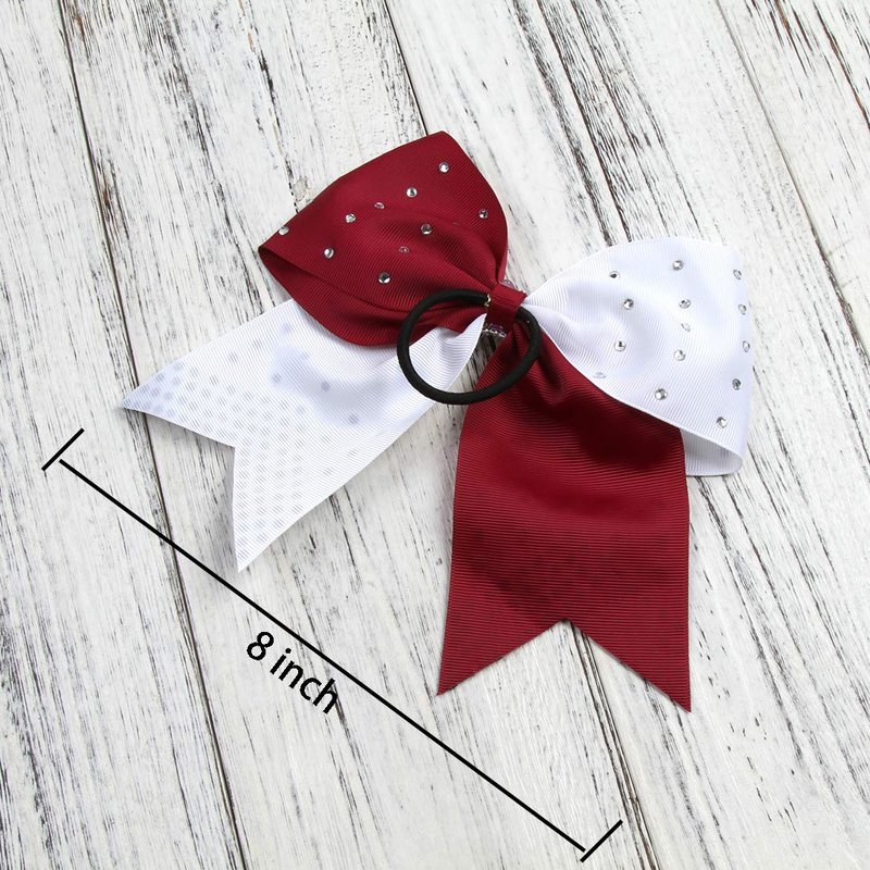 8 Inch 2 Colors Cheerleader Bows Ponytail Holder with Bling Fling Rhinestones Hair Tie Cheerleading Bows 6 Pcs (Maroon/White)