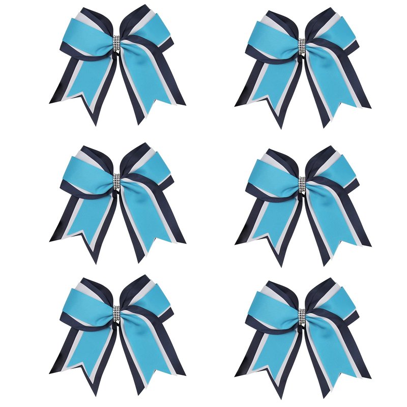 8 Inch 3 Colors 3 Layers 6 Pcs Cheerleader Bows Jumbo Cheerleading Bows Hair Elastic Hair Tie for High School College (Navy blue/White/Light blue)