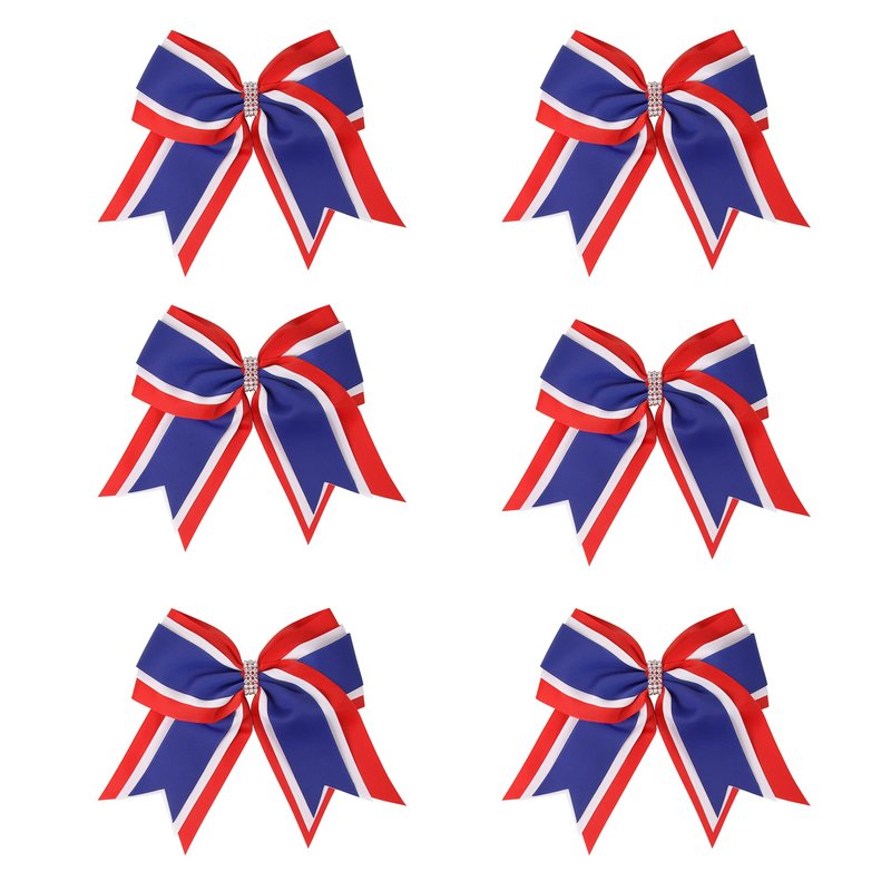 8 Inch 3 Colors 3 Layers 6 Pcs Cheerleader Bows Jumbo Cheerleading Bows Hair Elastic Hair Tie for High School College (Red/White/Royal blue)