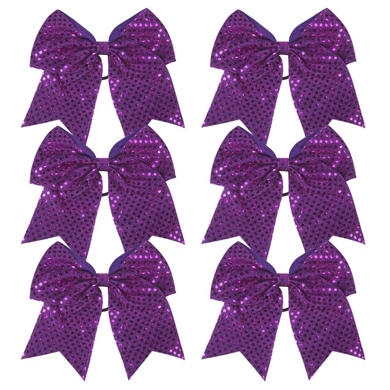 8 Inch Cheer Bows Cheerleader Ponytail Holder with Bling Fling Sequin Hair Tie Cheerleading Bows 6 Pcs (Purple)