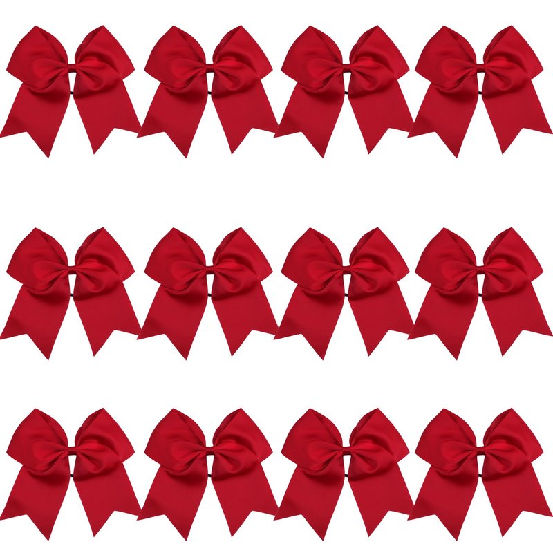 8 Inch Cheerleader Bows Ponytail Holder Solid Color Cheerleading Bows Hair Tie (Cherry Red)