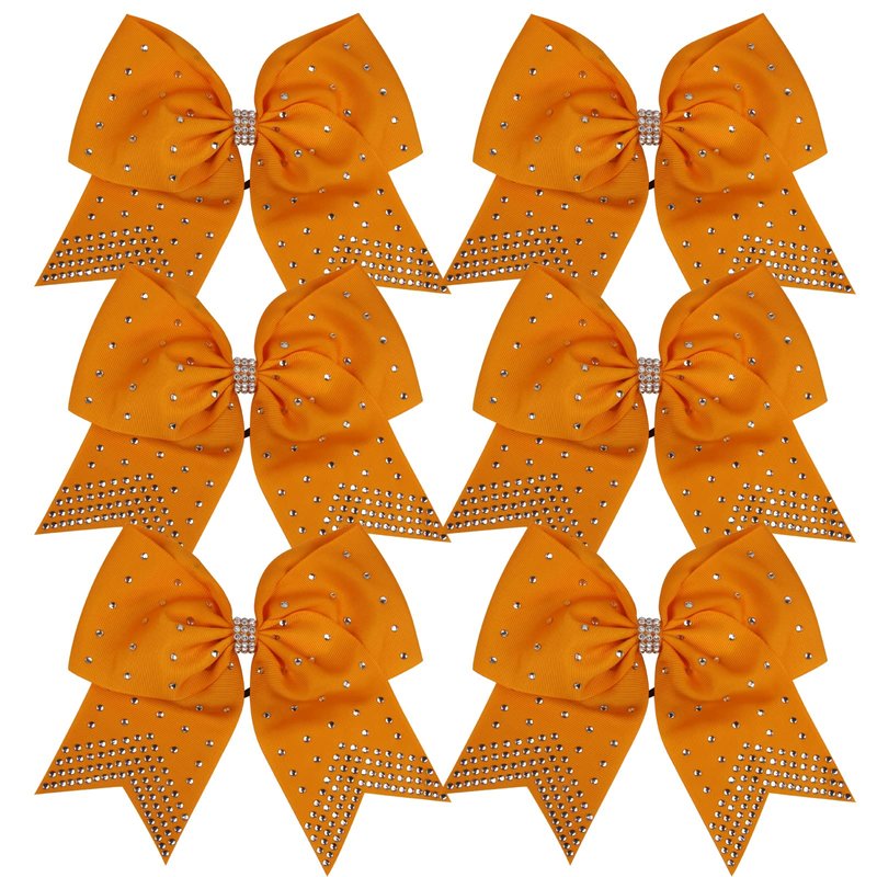 8 Inch Cheerleader Bows Ponytail Holder with Bling Fling Rhinestones Hair Tie Cheerleading Bows 6 Pcs (Orange)