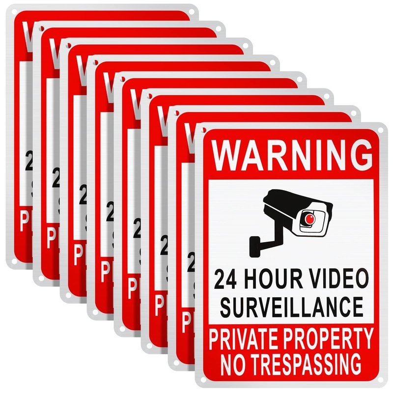 8 Pack Private Property No Trespassing Sign 24 Hour Video Surveillance Sign Reflective Aluminum Security Camera Sign Trespassers Will Be Shot Sign Warning Signs for Home Safety, 7 x 10'' (Video Sign)