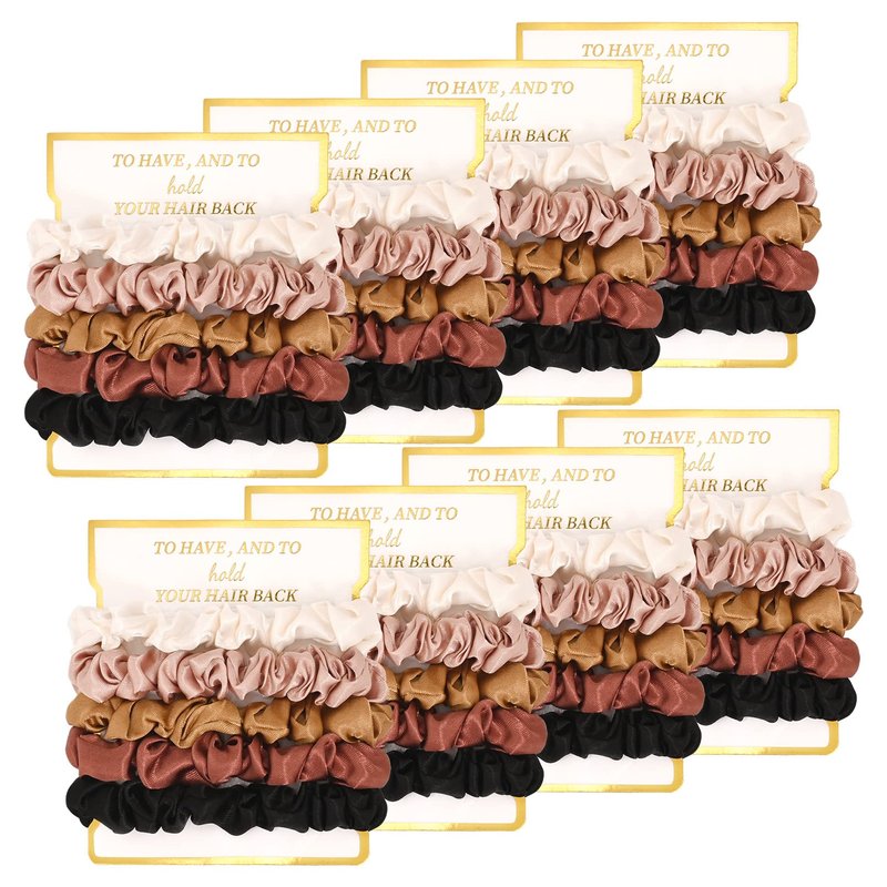- Celebrate in Style: This pack of eight bridesmaid hair scrunchies is not only ideal for the wedding day but also makes a fantastic gift for a memorable bachelorette party. Each friend can rock their scrunchie during the celebration, creating a cohesive and stylish look that will make the event even more unforgettable.