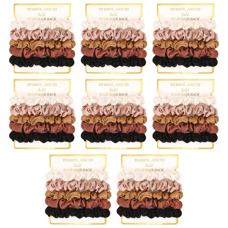 8 Pack Satin Scrunchies - Soft Hair Ties for Bachelorette Party Favors and Bridesmaid Proposal Gifts (Ivory, Rose Gold, Gold, Wine, Black)