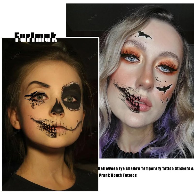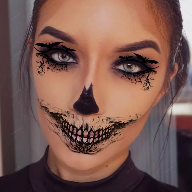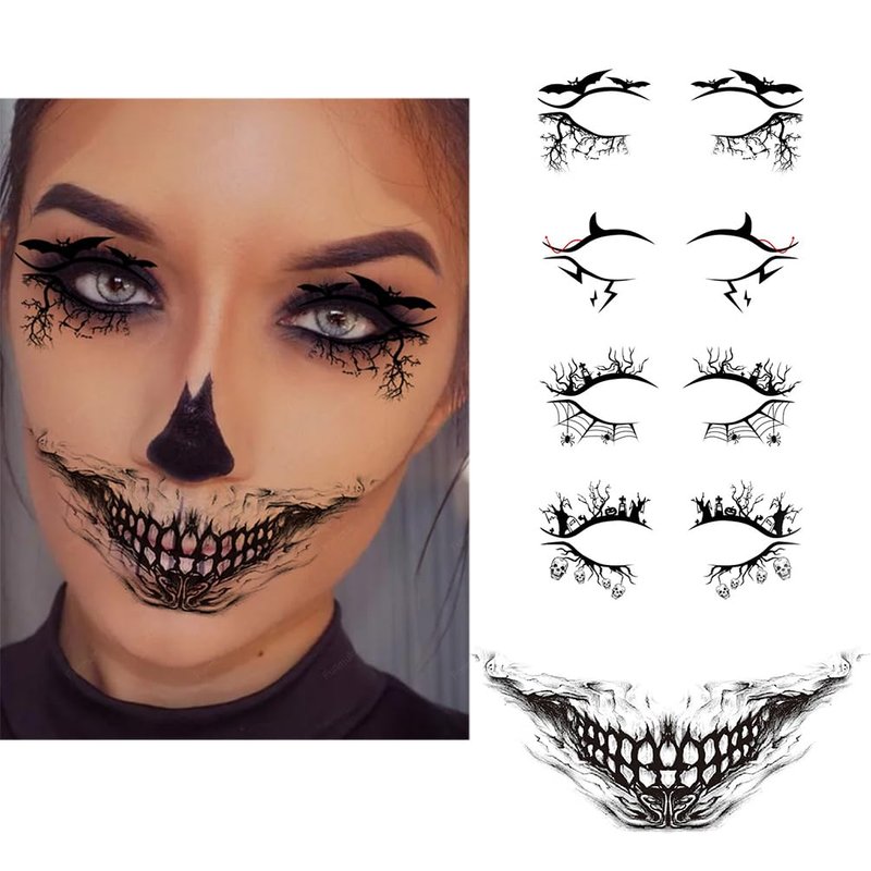 - DIY Makeup: Use these face tattoo stickers to accent your interesting makeup, they looks vivid and natural, supplemented with some makeup to make the final look very realistic and gruesome, great trick to surprise and scare your friends. These eye shadow and mouth makeup tattoos can be not only applied to Halloween parties and Day of The Dead, but also to other daily wear, like cosplay, performances, photography, masquerades, and so forth, making you more appealing in the crowd.