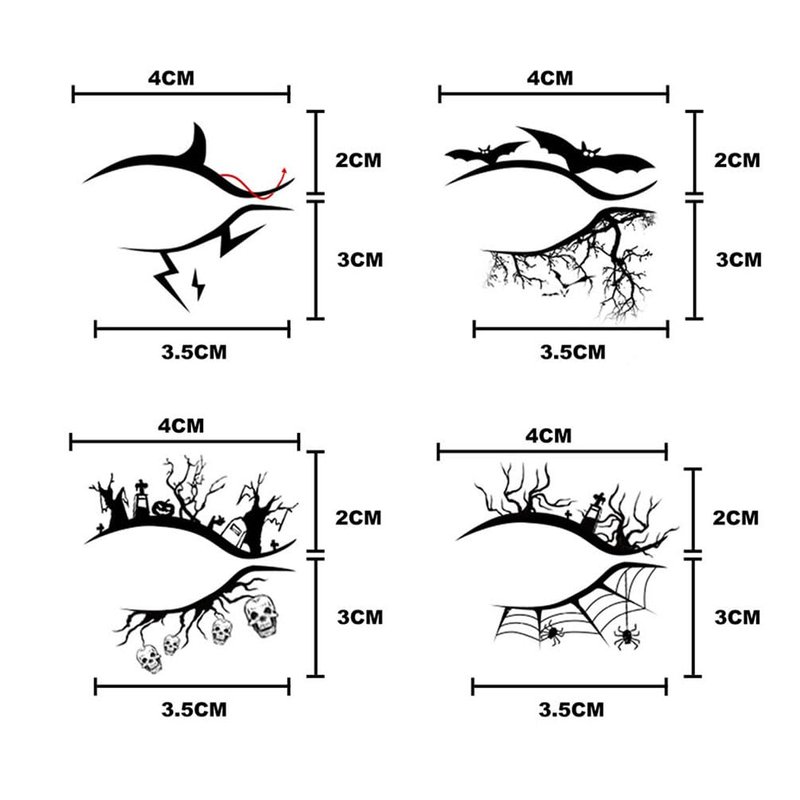 - Halloween Theme Design: Our Eye Shadow tattoos are designed by bats, spider webs, the tree of death which look vivid, perfect for Halloween party