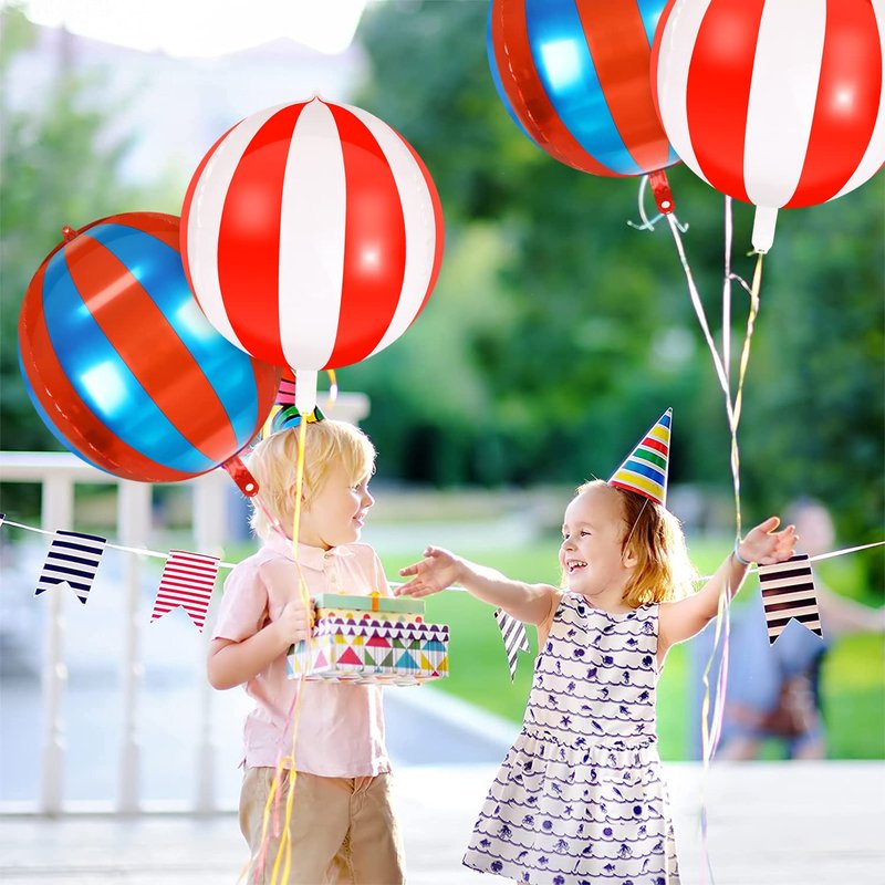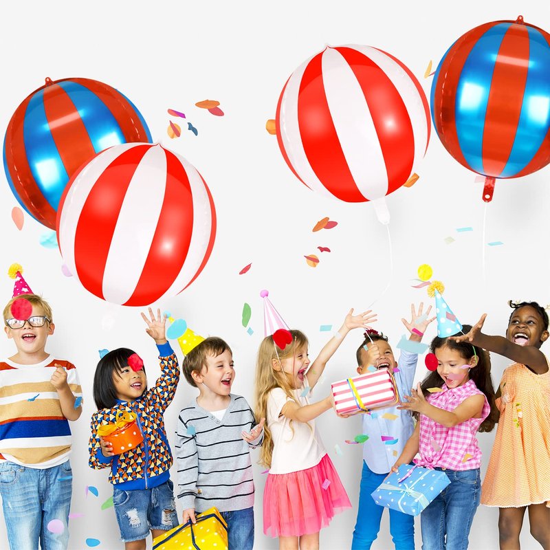 - ❤ Easy to Use and Long Lasting - For the 360 degree 4D round sphere circus mylar balloons, you could use the pump to inflate the balloons, and then pinch the inflatable mouth, so the balloons will self seal.People will love them so much.