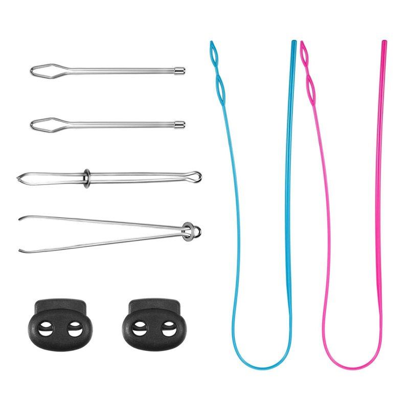 - 1. **Complete Replacement Set:** This drawstring replacement tools package includes a comprehensive set of 8 pieces: 2 plastic flexible drawstring threaders, 2 metal drawstring threaders, 2 pairs of metal tweezers, and 2 cord locks. Everything you need for convenient and efficient drawstring replacement.