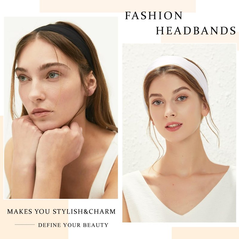 - 【Premium Material】Soft womens headbands Made of polyester and spandex material,Feel soft and smooth, wear very comfortable;breathable, lightweight, and ultra stretchy,not easy to pilling, not easy to slip.You can wear the headbands all day long without any discomfort.