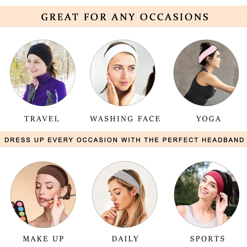 - 【Widely Application】Our sweat bands headbands for hair is widely application in yoga,ballet, dance, running,workouts,travel,makeup,hiking, outdoor sports,washing face and other physical activities.our headbands not only keep your hair in place,but also effectively absorb sweat and allowing you to fully concentrate on your exercises.
