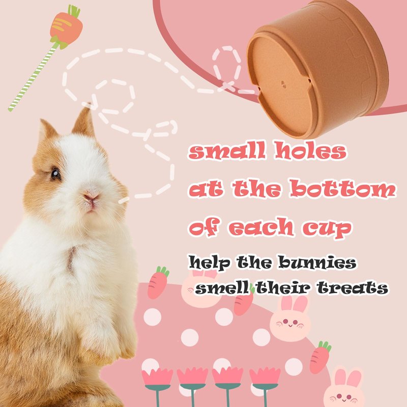 - 🦔 THOUGHTFUL DESIGN: Small holes in the bottom of the cup help bunnies smell their food to stimulate their instincts, and the raised rim at the bottom provides the proper space for storing feed, dried fruit or diced carrots.