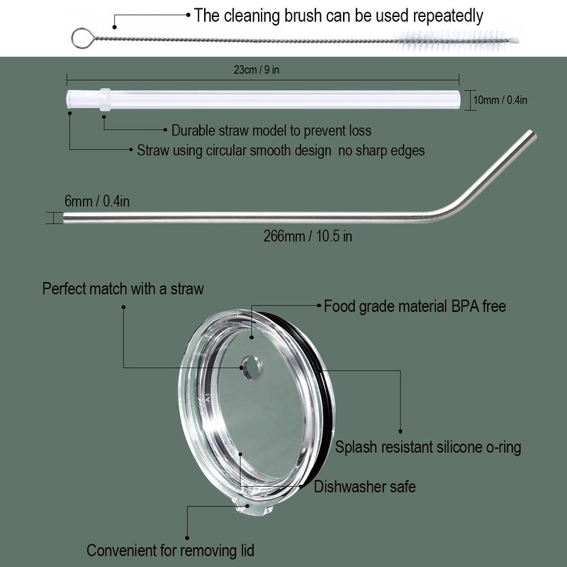 - ◀PERFECT GIFT:Two styles Replacement lid combination Extra cleaning brush with 2 plastic straws and 2 stainless steel straw to save you money, Great for Use with Smoothies, Coffee, Tea, Festive Cocktails, Children's Bottles. Also Great for Use in Car Thermos or Water Bottle, or for Athletes