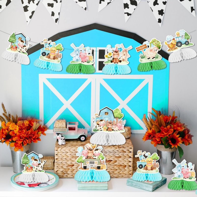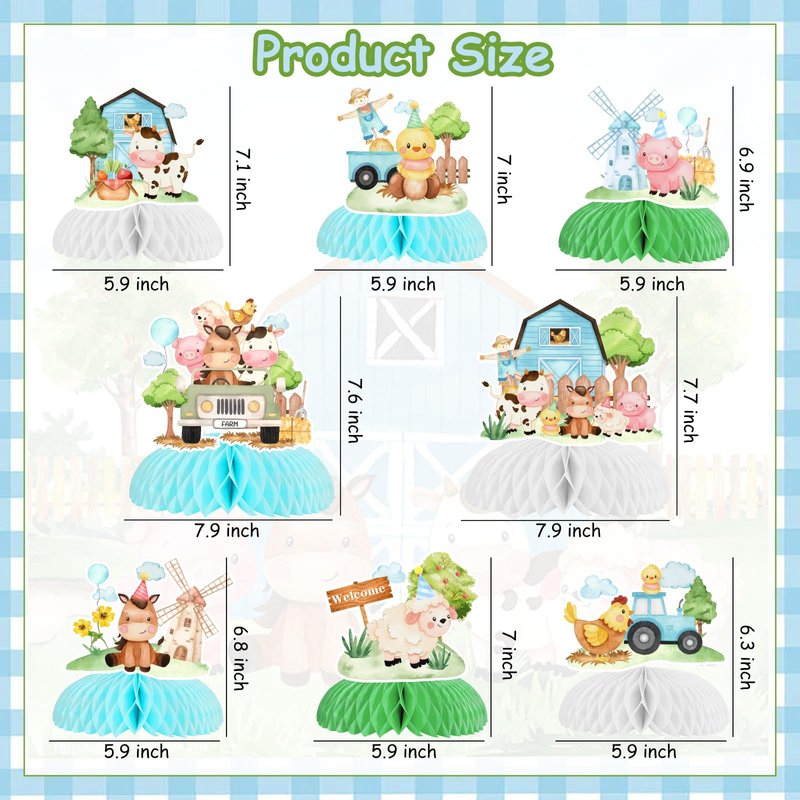 - Package Includes: You will receive 8 pieces farm animal honeycomb centerpieces with 8 different styles, including cow, sheep, horse, pig, chicken patterns and 2 animal groups patterns. which will make guests at the party feel like they are in close touch with the farm animals.