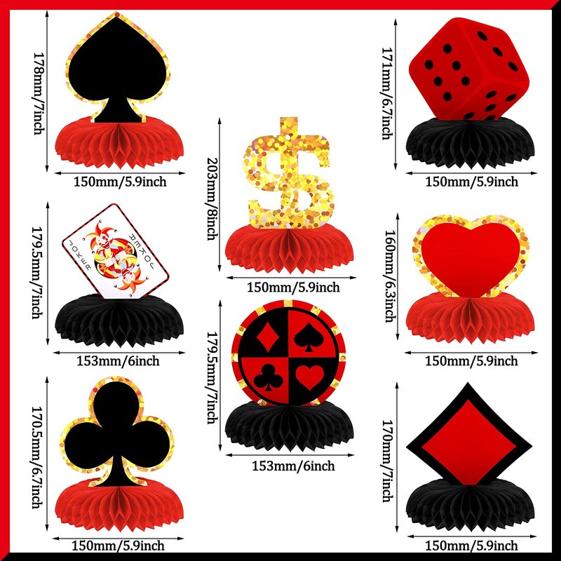 These casino theme honeycomb centerpieces can be applied as dinner table decoration, room desktop decor, photo prop and so on.