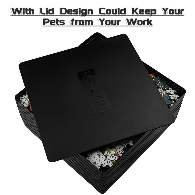 - Style: Plastic, stackable trays with lids for puzzles up to 1500 pieces