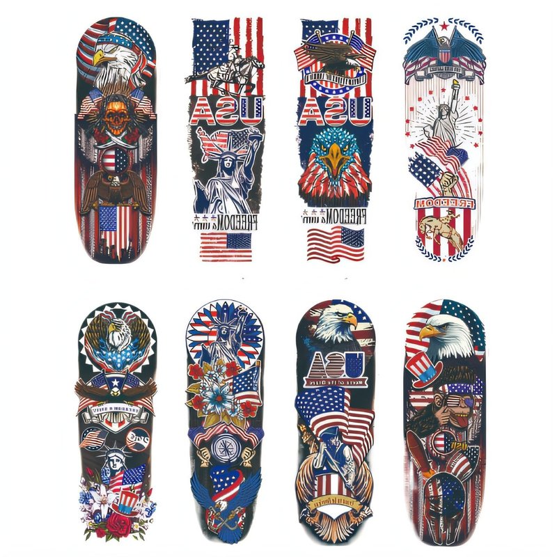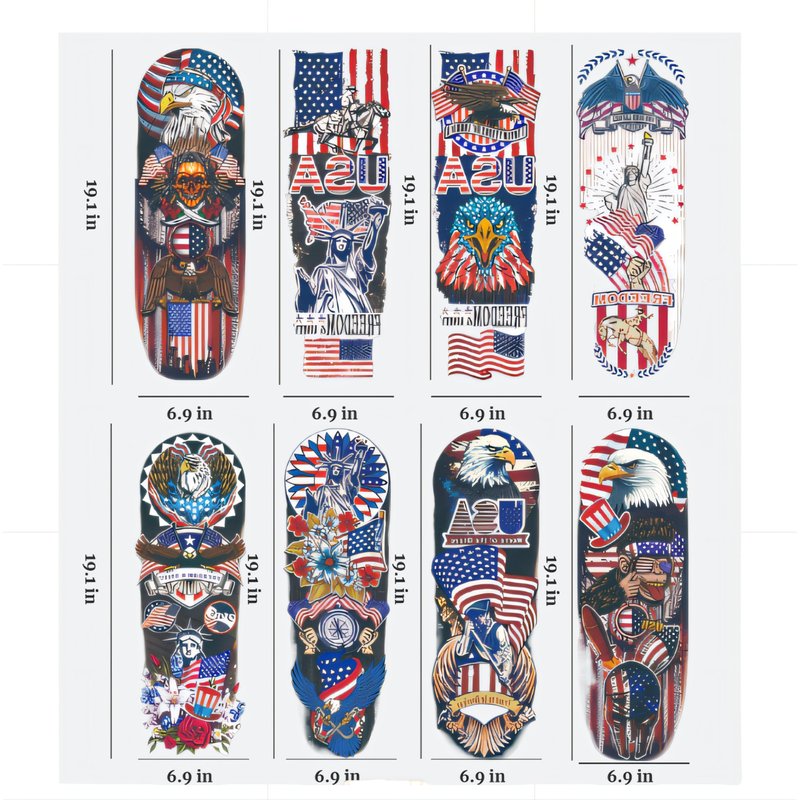 8 Sets of Color Temporary Tattoos for Men Arm Tattoos Skeleton Eagles Statue of Liberty Western Cowboys American Flag Tattoos Stickers Paris Olympics Labor Day Halloween Adult Stickers