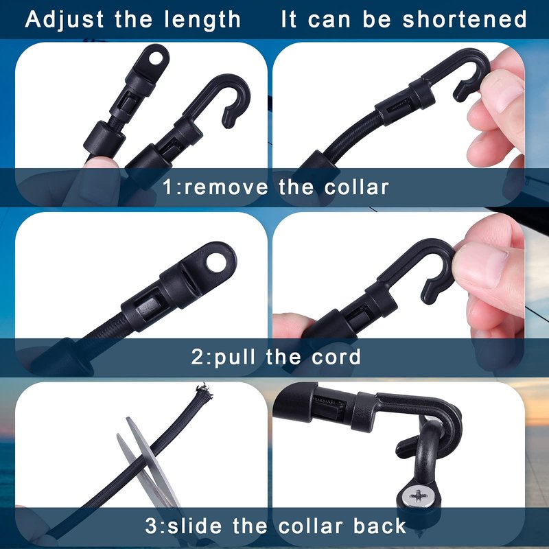 - Adjustable length: the length of this fishing rod hold down strap is adjustable according to your need, you just need to remove the collar, pull the rope and slide the collar backward, and remove the extra part of the rope, then you can get the length of the rope as you want