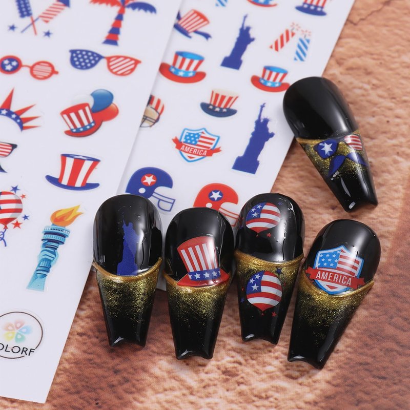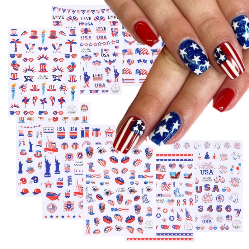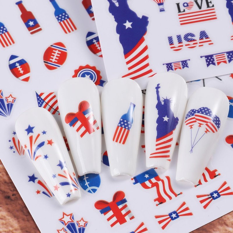 - Easy to use: Lots of different July 4 Nail Art Stickers designs for you to choose to fit natural or false nails, toenails, or nail tips. A self-adhesive design nail sticker is the most convenient way to decorate nails.