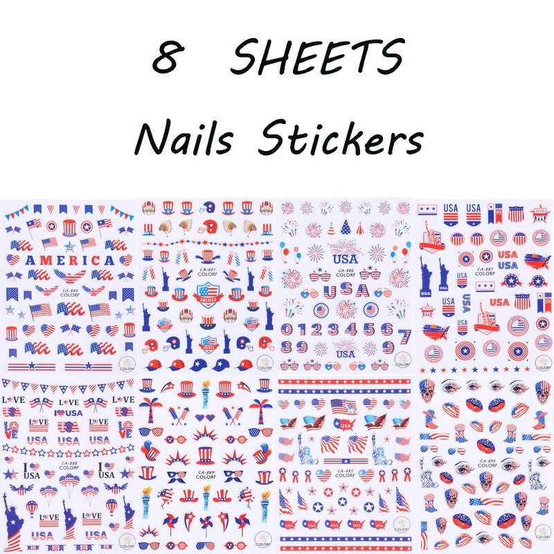 - Quantity:You will get 8 sheets delicate American Independence Day nail art stickers ,variety of styles, can be used for nail decoration.