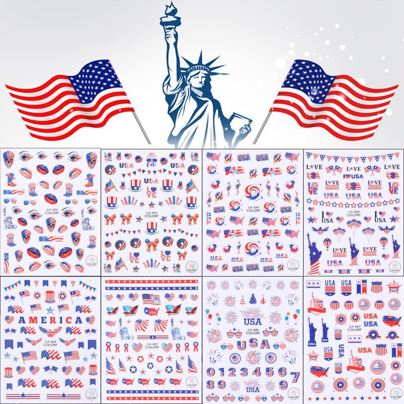 Package Contents: 8 Sheets USA Independence Day Nail Sticker