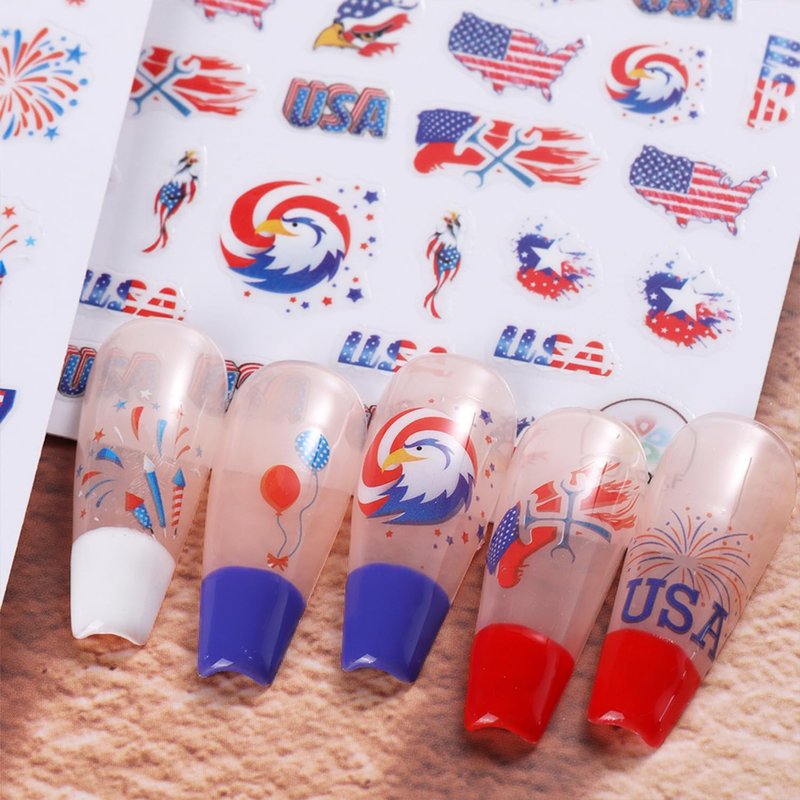 - 【Widely Used】These patriotic nail art stickers decoration are suitable for professional nail salons and home use. These nail decals is very suitable for 3D nail art, Independence Day decorations, face, body, nails, cell phone case, invitation card and etc. Nail decals are best gifts for nail lovers.