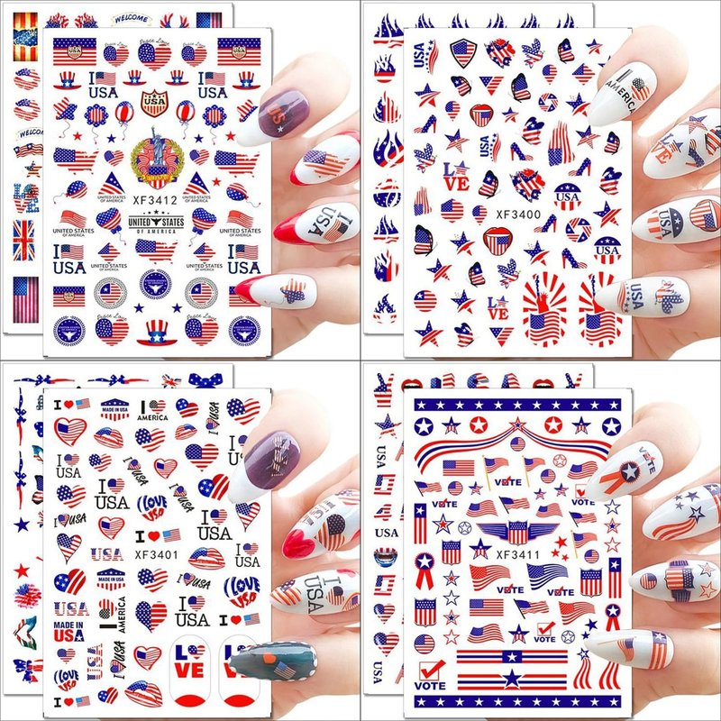 • 【Widely Used】These patriotic nail art stickers decoration are suitable for professional nail salons and home use. These nail decals is very suitable for 3D nail art, Independence Day decorations, face, body, nails, cell phone case, invitation card and etc. Nail decals are best gifts for nail lovers.