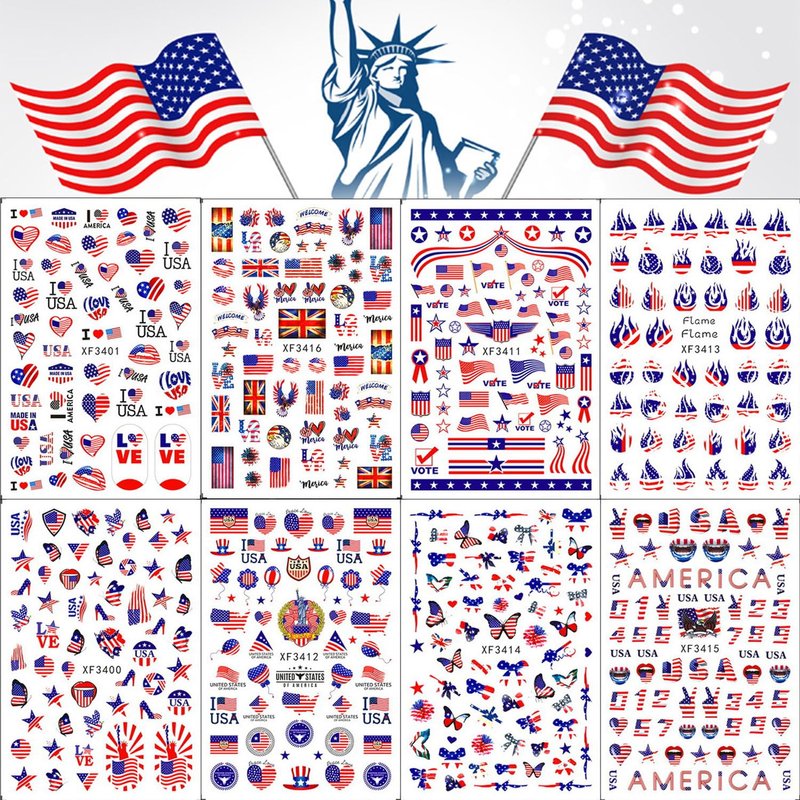 Package Contents: 8 Sheets USA Independence Day Nail Sticker