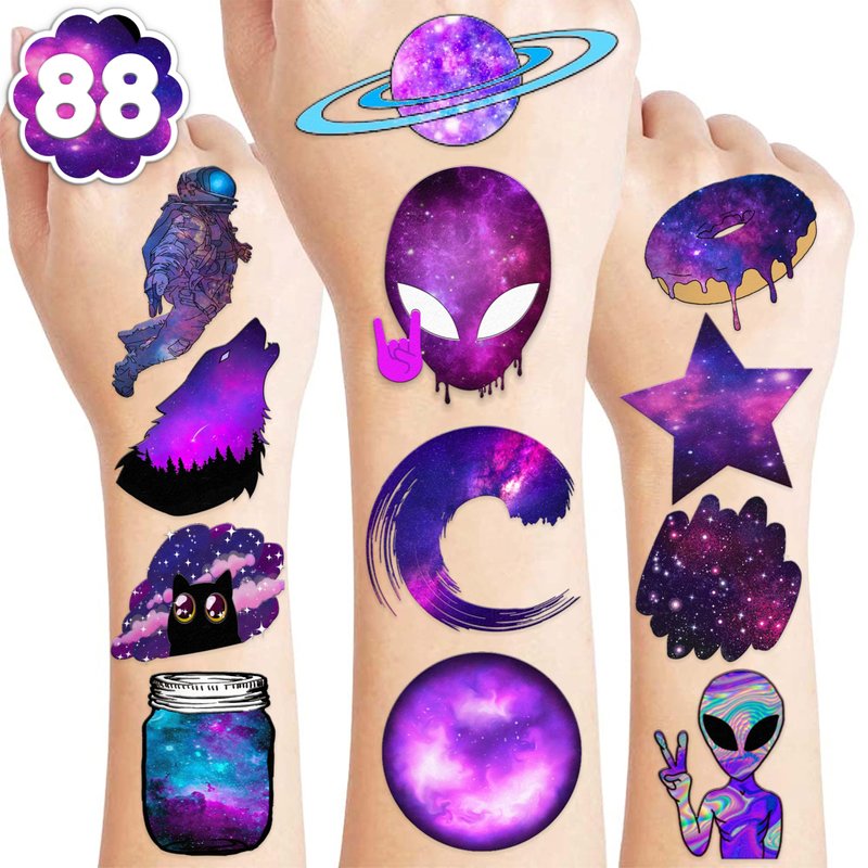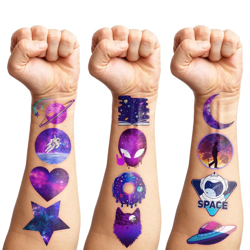 - 🌌BEAUTIFUL DESIGN: Our collection of tattoos for your space party showcases intricate designs of constellations, galactic formations, celestial bodies, and shooting stars. These designs come together to create a captivating and enigmatic space-themed ambiance that will undoubtedly elevate your gathering.