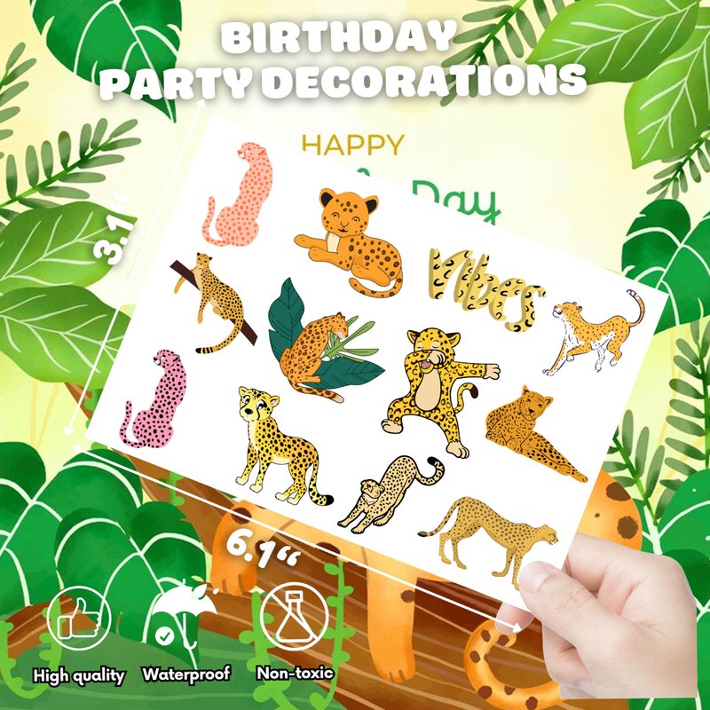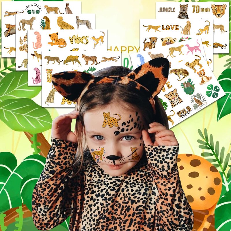 - 🌳CHEETAH PARTY: Temporary cheetah tattoos are an absolute must-have for birthday parties, spring events, and cheetah-themed gatherings. These stickers showcase fierce jungle creatures like cheetahs and leopards, making them an outstanding gift for kids. Children who use these tattoos at parties experience nothing but pure happiness and delight, without a single trace of sorrow.