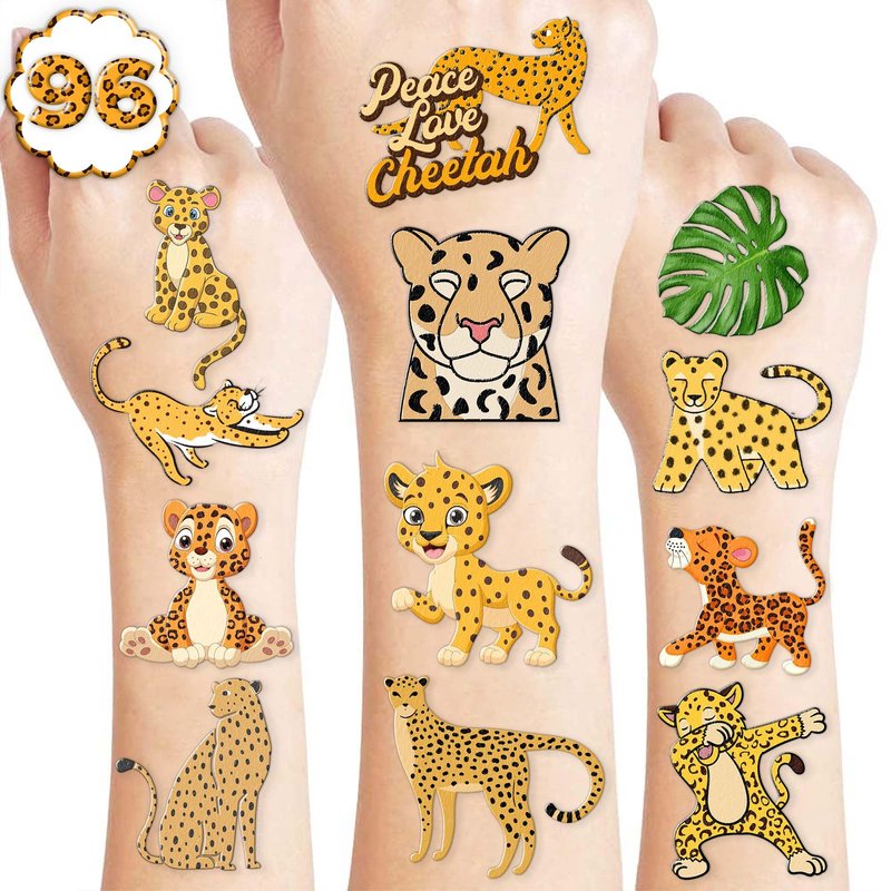 - 🐆PACKAGE INCLUDE: Looking for some fun party favors? We've got you covered! Our pack includes 96 cheetah tattoo stickers spread across 8 pages. These stickers are the perfect addition to any celebration and are suitable for all ages. With a size of 6.1 by 3.1 inches, they're sure to make a statement.