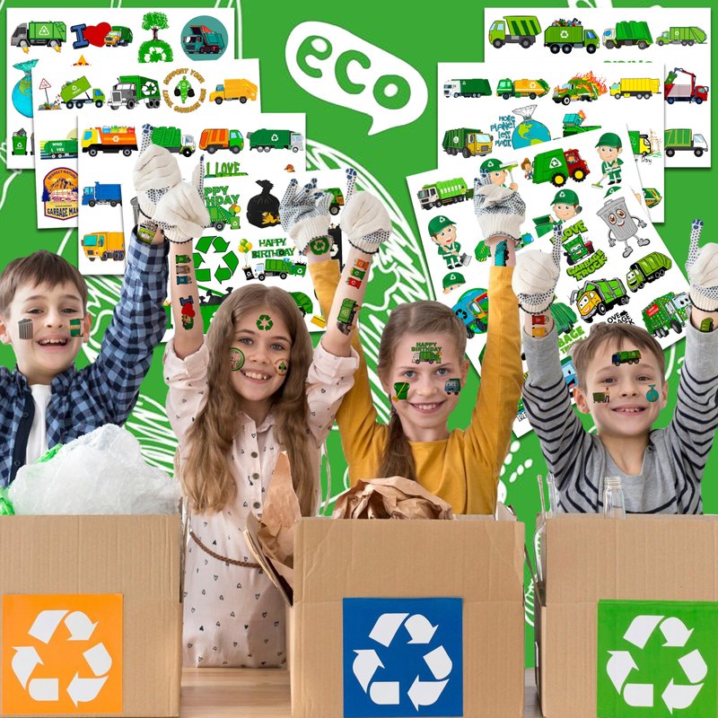 - TRASH TRUCK BIRTHDAY PARTY SUPPLIES: If you haven’t had the option for GARBAGE TRUCK themed birthday party decorations yet, GARBAGE TRUCK tattoos complete with vibrant green GARBAGE TRUCKS, TRUCK GARBAGE can will be a terrific choice for children on their momentous day. Sure enough to believe that kids have fun playing with our tattoo stickers. The tattoo is the best gift for a birthday party together with the significant meaning that it says