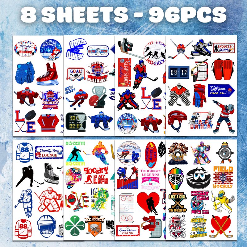 8 Sheets (96PCS) Ice Hockey Temporary Tattoos S...