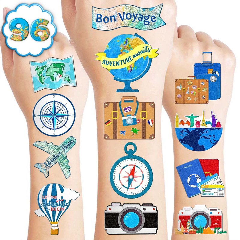 - TRAVEL TATTOO: If you haven’t had the option for a TRAVEL theme birthday party yet, TRAVEL temporary tattoos complete with a traveler costume, passport, suitcase, map, and the globe will offer you an awesome experience all over the world if you choose our TRAVEL tattoo stickers. Sure enough to believe that kids have fun a lot of when playing with our tattoo stickers. The tattoo is the best gift for a birthday party together with the important meaning that it says ^^