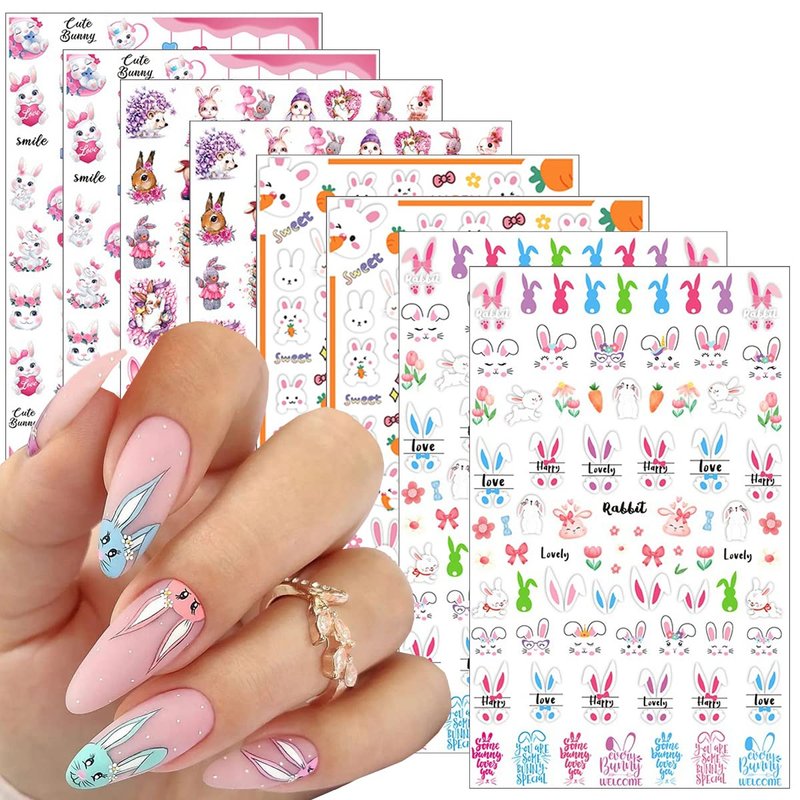 - 3D Nail Stickers: Easter rabbit nail stickers 8 Sheets Easter set, beautiful and fashionable, you can design your own nails according to your own preferences, suitable for finger nails and toe nails.