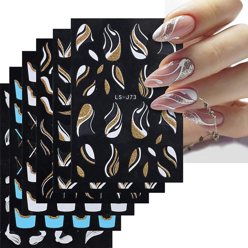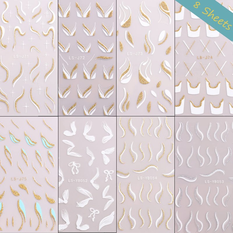 - 【French Nail Stickers】You will get 8 Styles of different French nail stickers, satisfy all your love for beautiful nails, a variety of waves, lines, French tip elements for you to choose from to DIY your own nail art designs.